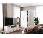 Недорогой четырехстворчатый шкаф белого цвета. Шкаф шириной 160 см без зеркал с лаконичным дизайном, 4 дверцы обеспечивают удобный доступ к вещам. Внутри шкафа три отделения: два отсека с полками слева и справа и центральный отсек со штангой для одежды с двумя полками для вещей и обуви.