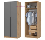 Высокий 2-створчатый шкаф для одежды со штангой и с двумя ящиками внутри. Современный шкаф серого цвета без зеркал с черной ручкой. Шкаф высотой 2 метра продает в комплекте с антресолью высотой 40 см.
