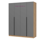 Вместительный 4-створчатый шкаф для одежды со штангами, полками и с двумя ящиками внутри высотой 2 метра дополнен антресольными шкафами высотой 40 см . Современный шкаф с фасадами серого цвета без зеркал с черной ручкой.
