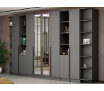 Одностворчатый шкаф в цвете графит серый с полками внутри. Шкаф пенал высотой 230 см можно дополнить антресолью, которая покупается отдельно. Шкаф шириной 42 см входит в серию мебели Мадрид и сочетается с другими шкафами и пеналами в том же цвете. Внутри шкафа пять полок, глубина 52 см позволить разместить большое количество вещей. Шкаф подходит для хранения одежды, документов или книг и может быть куплен как отдельный предмет или в составе комплекта мебели.