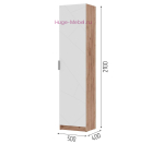 Одностворчатый распашной шкаф Орегон с выдвижной штангой и двумя полками внутри. Шкаф шириной 50 см и глубиной 40 см подходит для узких коридоров и небольших помещений. Шкаф пенал можно комбинировать с прихожей Орегон в том же цвете. Фасад шкафа белого цвета из качественного МДФ с фрезеровкой в виде пересекающихся линий.