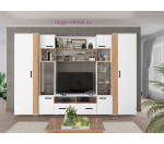 Недорогой платяной шкаф Оскар-18 входит в серию мебели для гостиной и может быть приобретен как отдельный предмет или в составе мебельного гарнитура. Шкаф со штангой белого цвета со вставками под дерево.