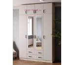 Четырехстворчатый шкаф Лагуна шириной 160 см с двумя выдвижными ящиками и зеркальными створками. Шкаф в современном сочетании светлого бежевого оттенка кашемир и декора дуб крафт серый. Вместительный шкаф для одежды с тремя отделениями внутри: в центральной части за зеркальными створками штанга длиной 78 см и два выдвижных ящика внизу, за двумя боковыми створками по 4 полки шириной 37 см. Шкаф Лагуна высотой 210 см можно дополнить антресолью того же цвета высотой 45 см.